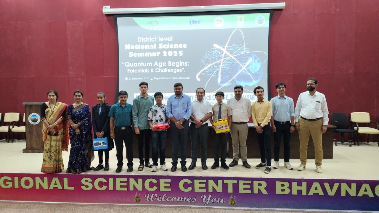ભાવનગર રીજીયોનલ સાયન્સ સેન્ટર ખાતે 12 સપ્ટેમ્બર, 2025 ના રોજ જિલ્લા કક્ષાના ‘નેશનલ સાયન્સ સેમિનાર 2025’ નું આયોજન કલ્યાણ પ્રાદેશિક લોક વિજ્ઞાન કેન્દ્ર ભાવનગરના સંયુક્ત ઉપક્રમે કરવામાં આવ્યું હતું.